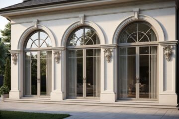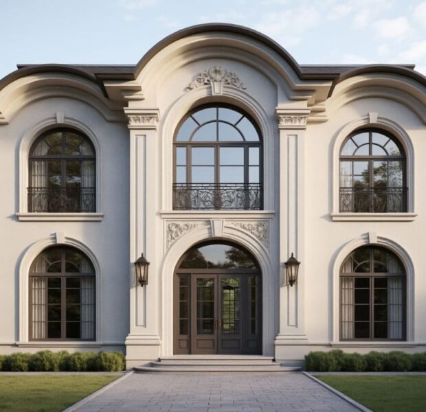 Полукруглая арка универсальна, может использоваться в загородных домах, коммерческих объектах, исторических постройках. Бывает глухой или с фурнитурой в нижней части. Подойдет для классической или модерновой архитектуры.